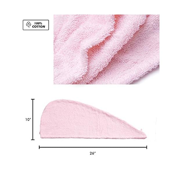 Keepoz Hair Towel Wrap Quick Dry 100 Cotton Super Absorbent Turban Head Wrap For Women With Button Non Microfiber Anti Frizz Hair Products Hair Cap For Curly Long Thick Hair Pink